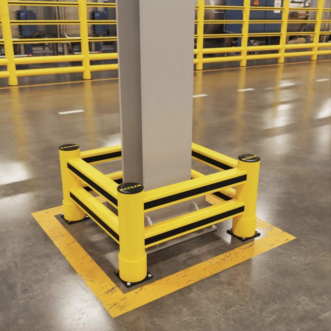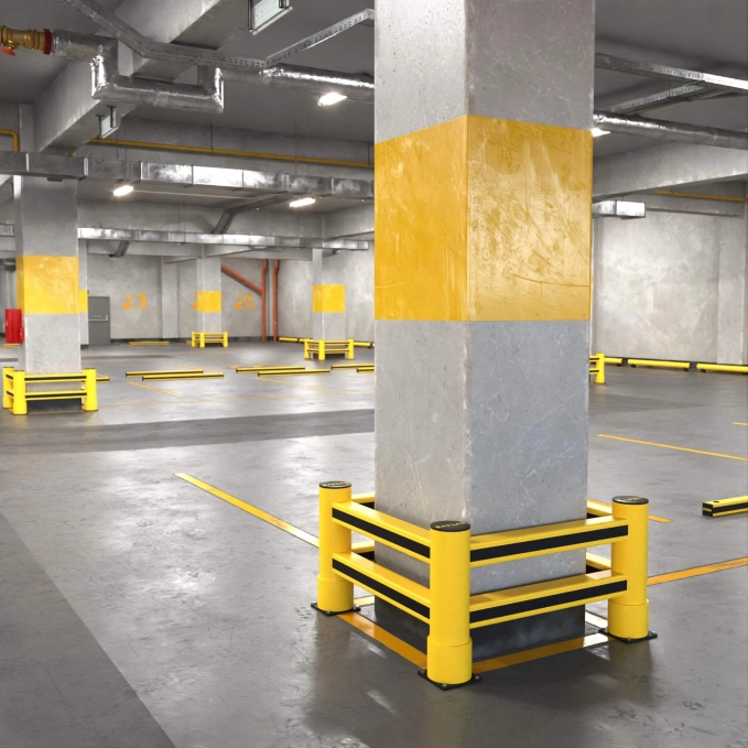Met zijn eenvoudig te monteren structuur is het ideaal voor het voorkomen/minimaliseren van schade die kan optreden als gevolg van voertuigbotsingen dicht bij de grond, aan de ronde of veelhoekige draagkolommen in binnen- en buitenomgevingen met transport-/laad- en voertuigverkeer. Ze worden gebruikt om ze te beschermen tegen slijtage veroorzaakt door voortdurende aanrijdingen op de draagriemen, en ook om de gewenste gebieden af te bakenen.