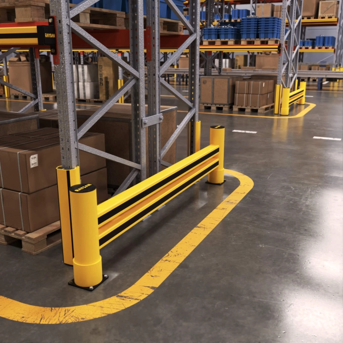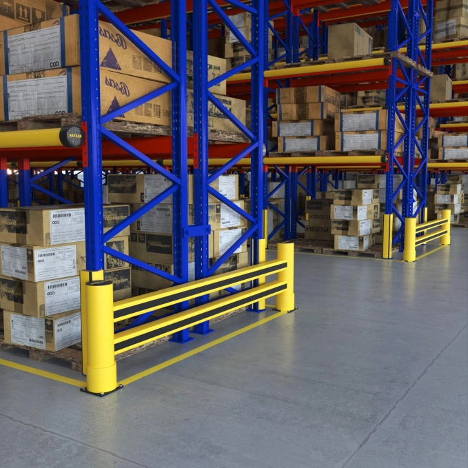 Deze barrière biedt extra bescherming voor magazijnstellingen en is uitermate geschikt voor zones met intensief transport- en laadverkeer. Dankzij de verhoogde constructie biedt de barrière superieure weerstand tegen aanrijdingen door heftrucks en ander intern transportmaterieel. Ze beschermt rekuiteinden effectief tegen slijtage en structurele schade door herhaalde botsingen, wat zorgt voor langdurige duurzaamheid.