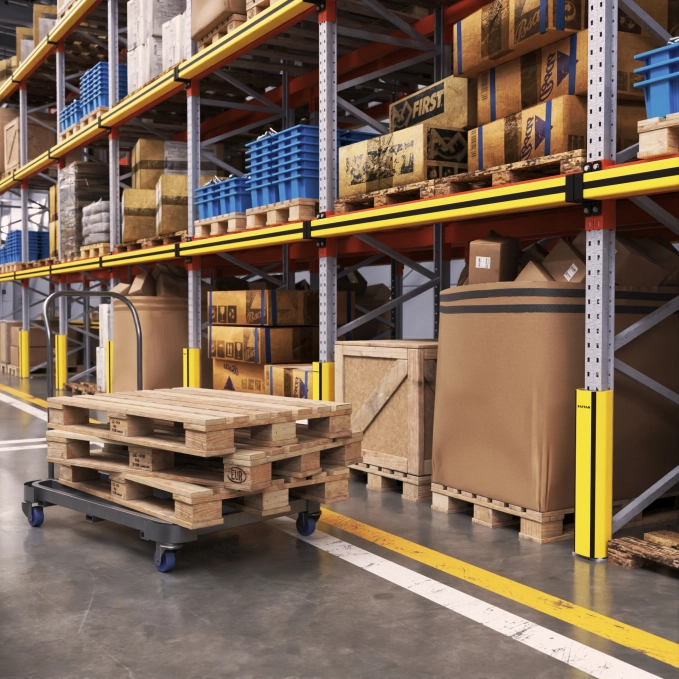 Deze barrière voorkomt effectief slijtage en beschermt rekpoten tegen schade door frequente botsingen, waardoor langdurige duurzaamheid wordt gegarandeerd en onderhoudskosten worden verminderd in drukke magazijnomgevingen.