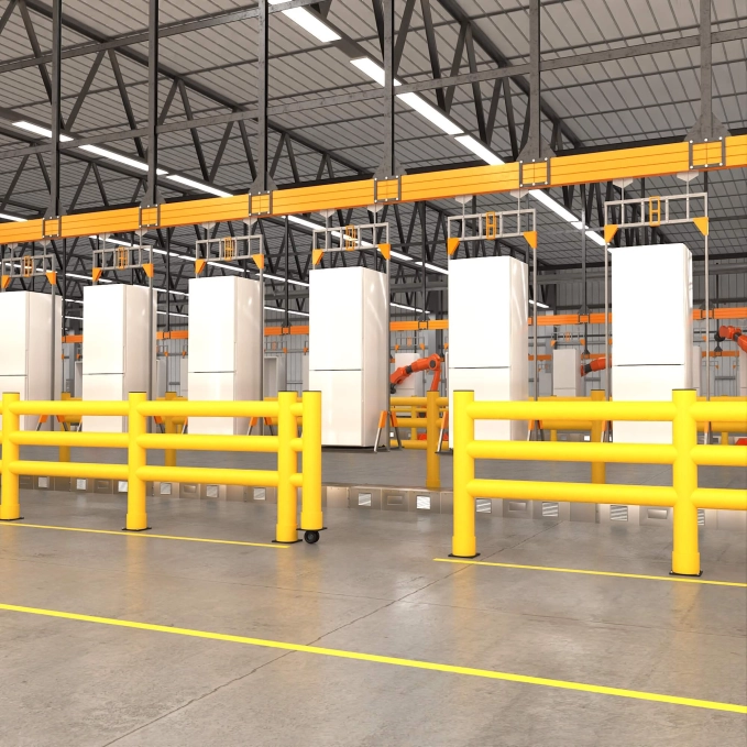 Met zijn eenvoudig te monteren structuur is het ideaal voor hoog-niveau indeling en gecontroleerde doorgang van gewenste gebieden in binnen- en buitenomgevingen met transport-/laad- en voertuigverkeer om voetgangers- en werkmachineverkeer te faciliteren. Dankzij zijn schuifstructuur is het de meest geschikte oplossing voor het creëren van grote gecontroleerde doorgangsruimtes zonder verlies van ruimte.