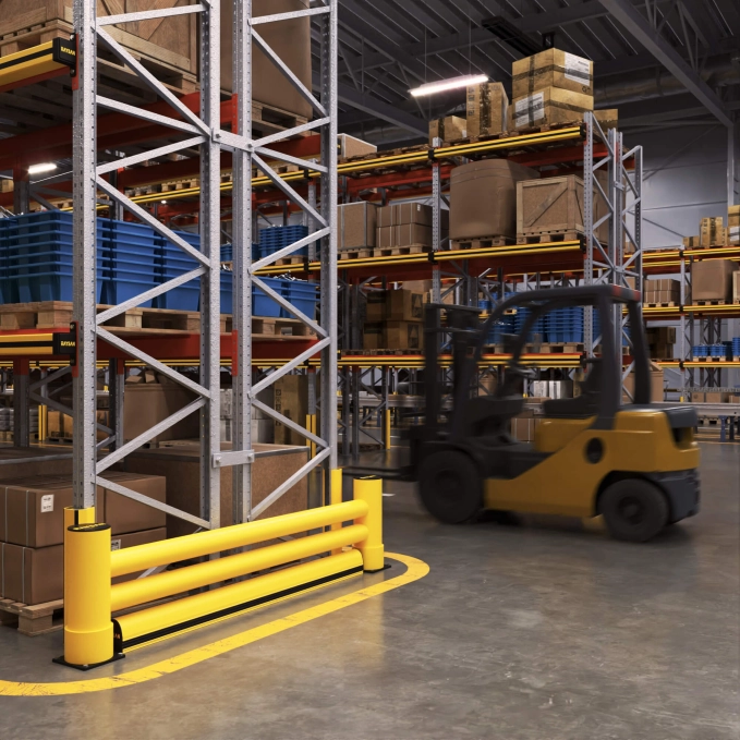 Voor optimale veiligheid combineert deze barrière een verstevigde impactweerstand met een geëntegreerde kerb barrier, wat zorgt voor uitstekende bescherming tegen aanrijdingen door voertuigen. Ideaal voor magazijnen met intensief transport- en stapelverkeer: de barrière beschermt rekuiteinden effectief tegen inslagen van heftrucks en voorkomt slijtage op de lange termijn.